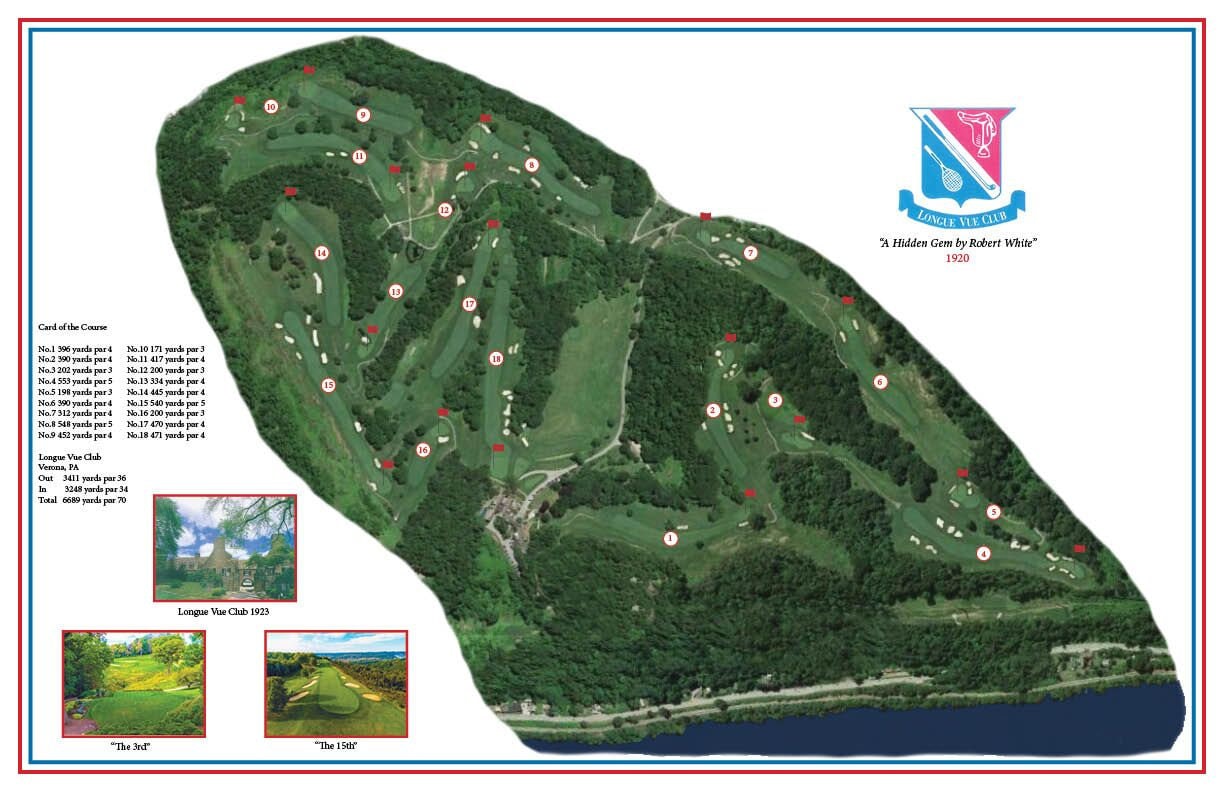 Designed by Robert White the Longue Vue golf course opened in 1925. The course rating is 716 and it has a slope rating of 136 on Bent grass. 400 Longue Vue Dr Verona PA 412 793 2375.